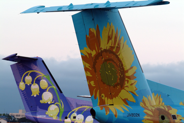 YS-11が3機、DHC8-300の「ひまわり」「すずらん」が2機、格納庫もない時代、