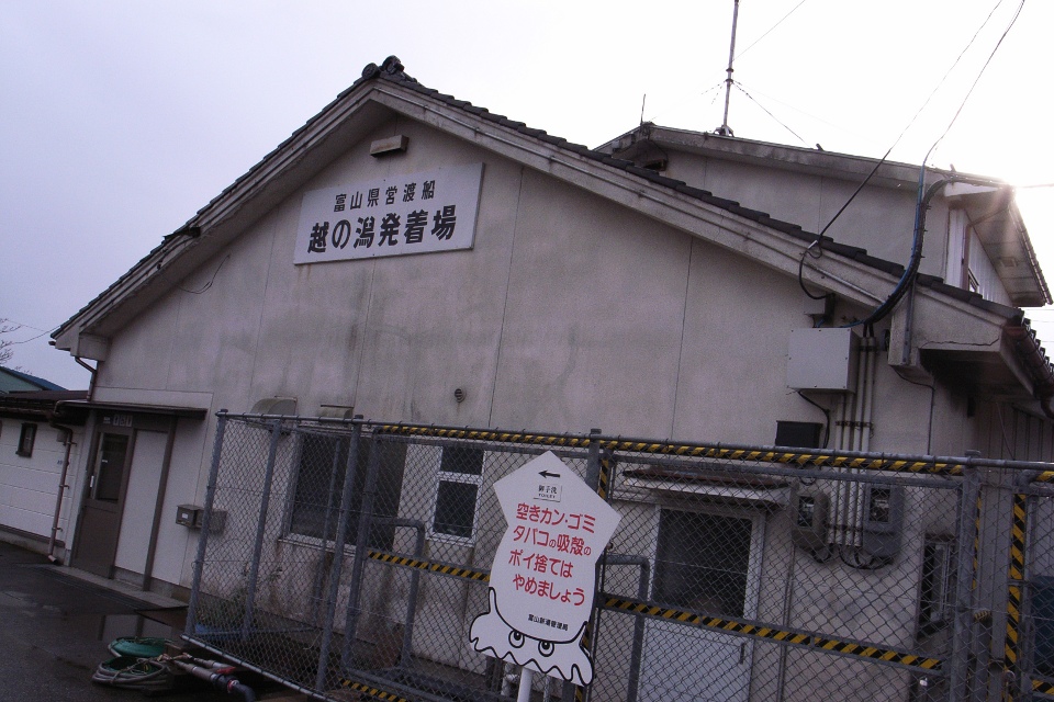 こちら、万葉線の終点「越ノ潟駅」の渡船発着場。人、自転車、バイクが乗れます。