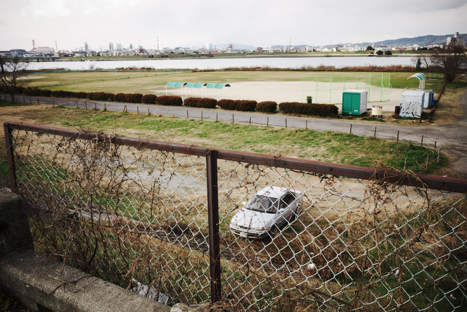 一枚目の奥にある標識は、道路奥へ繋がる土手への道スジなので