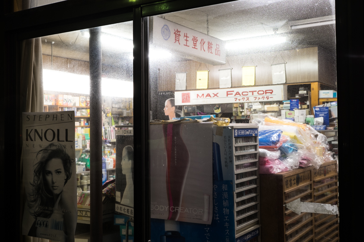 おお、夜の「明治コナミルク」、考えたこともなかったですが、いい感じですね。浮き上がるような様が美しいです。