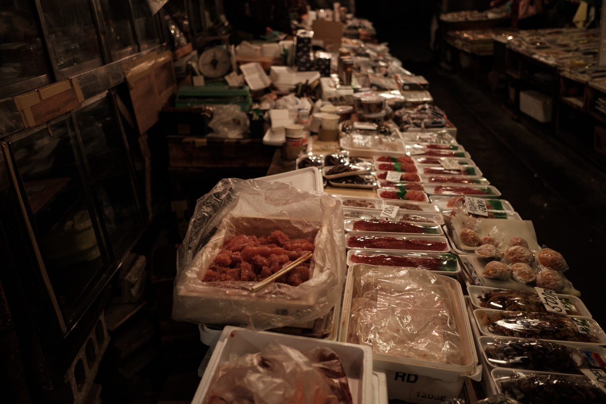陸奥湊から始まる朝 -1- 青森 2017.02.27 陸奥湊の朝市は観光客向けではなく、ガチな商売もん。それ故に安価で良いものが多い。ぼくたちはその恩恵に与り楽しむことが出来る。その分、かなり早い時間に行くべきなのだ。冬の朝、まだ夜が明け切らないうちに勝負は決まるということ。 FUJIFILM X-T2 + XF 23/2R WR