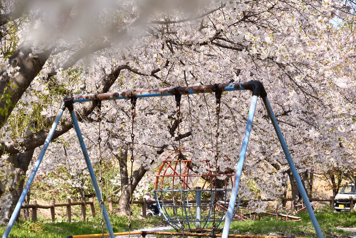 この見事な桜、しかも好天というのはいつもありがたいなあと思うのです。言葉を失いほどすてきでした。こういう桜は北海道にないのです。遊具も、しばらくは使われていないかなと思いますが、たまには子供もやってくるんでしょうね。