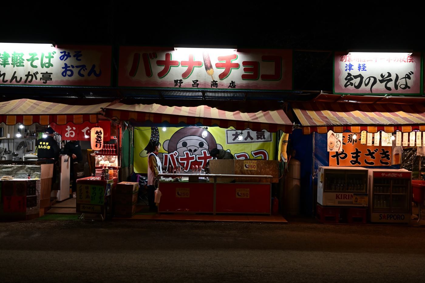 そろそろ時間もなくなってきて帰らねばならない時刻が迫る。ああ、弘前よ。おれは帰ってきた(一年ぶり数十回目)。九分散りのはずなのにいつもの場所から見れば、あれ?満開か??と思うほどの美しい夜桜である。実は花も少し残っているが、あとは「咢(がく)」なのだ。弘前の桜はボリュウムがすごいので、散っても咢があるうちはライトアップされれば赤く浮き立つのである。よく見ればスカスカだし、近寄ればバレる。でも、こうして望遠で離れて圧縮するとけっこうイケる。あの橋の上も人が少ない。圧倒的に花見客はもう少ないのに映える。そこが弘前なのだ。妙にひとりで頷いて帰るのだ。うんうん、いいよ、弘前。